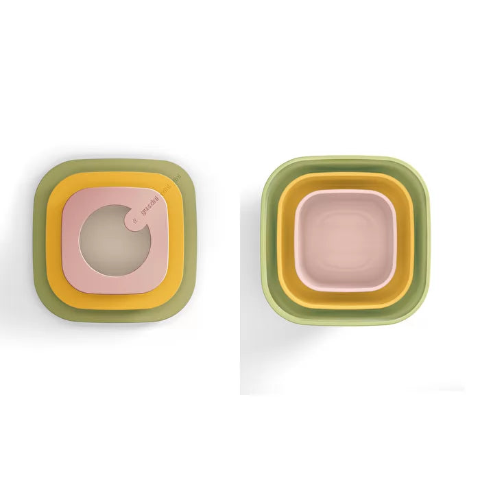 Nepropusne posude sa poklopcima idealne za čuvanje u zamrzivaču ili frižideru, zagrevanje u mikrotalasnoj pećnici bez skidanja poklopca, transport i serviranje hrane kod kuće ili van kuće. Može se složiti i štedi prostor zahvaljujući četverokutnom obliku. Kontejneri bez poklopca su napravljeni od plastike* na biološkoj bazi dobivenoj od otpada i ostataka biljne biomase, dakle obnovljivi, nefosilnog porijekla i 100% reciklirajući.